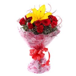Red Roses N Yellow Lily