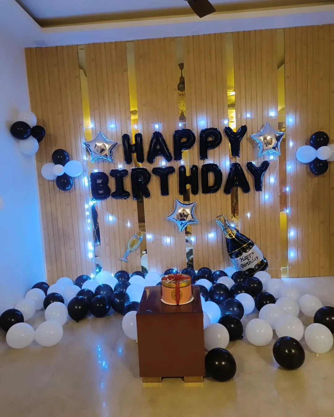 To complete the birthday decoration with black and white balloons, integrate complementary elements such as table settings, floral arrangements, and lighting. Candles, fairy lights, and elegant tableware can enhance the overall aesthetic, creating a cohesive and inviting environment for your guests.