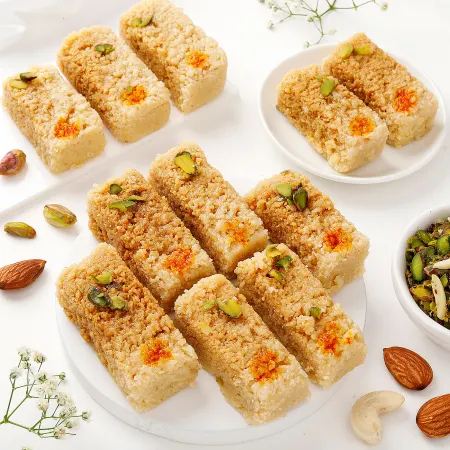 Send 1 Kg Milk Cake Online Same Day Delivery  The milk cake is a deceptive sweet. It looks relatively simple but it takes utmost skill and patience to make this melt-in-the-mouth sweet. The crumbly temptation is made of curdled milk and saffron, reduced and caramelised over a low flame with constant observation to ensure perfection.