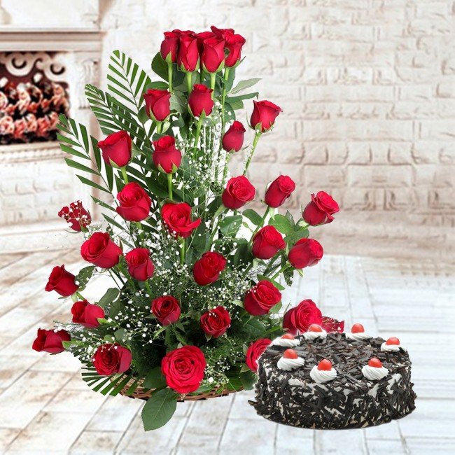 - 35 Fresh Red Roses Basket Arrangement