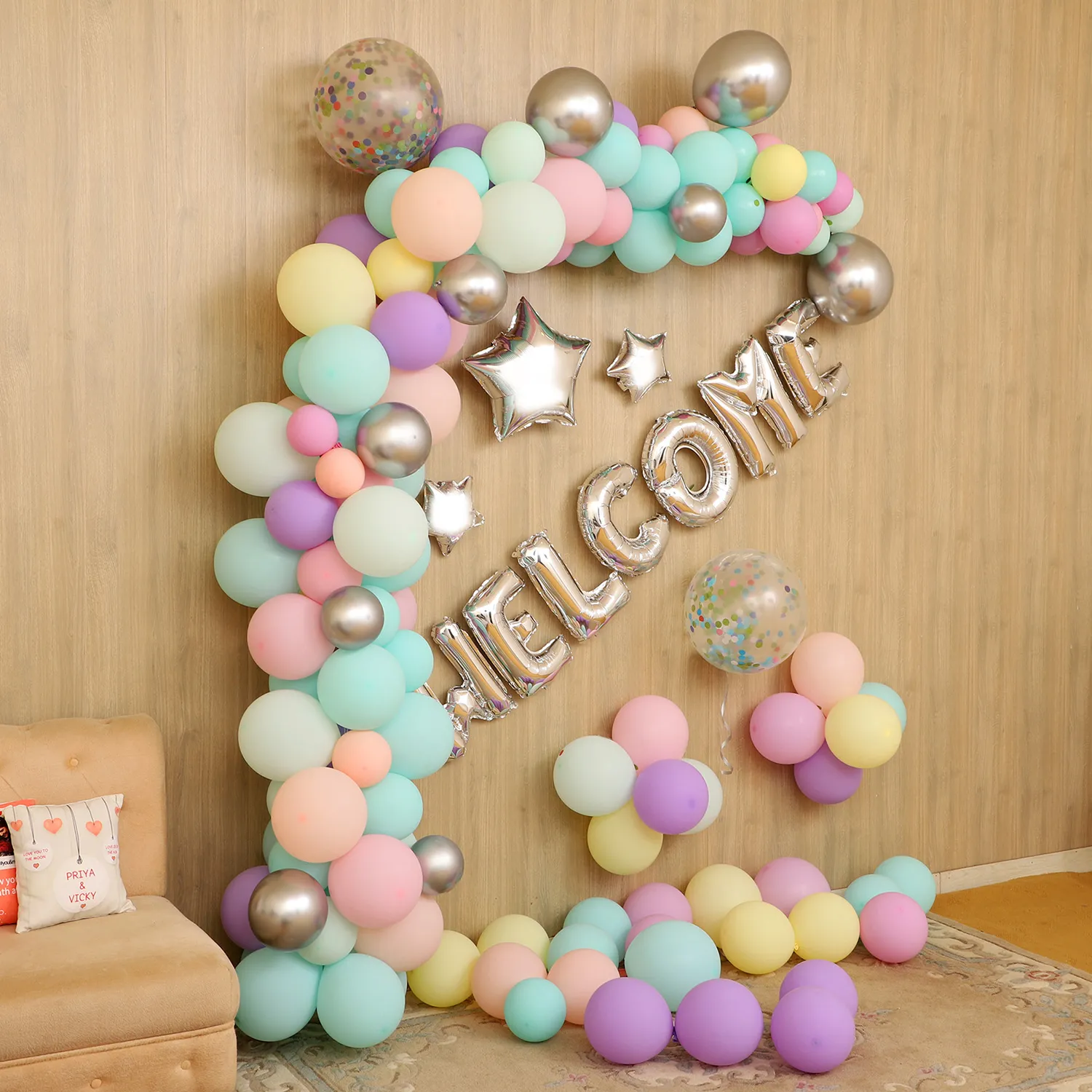 The arrival of someone who makes you happy is a reason to celebrate for sure. Throw a party to your friends and family who are visiting you after a long time, and let them know that their arrival was awaited. This balloon decor is based on an elegant theme with the shades of pastel and confetti balloons. Welcome them with a smile, and create new memories.